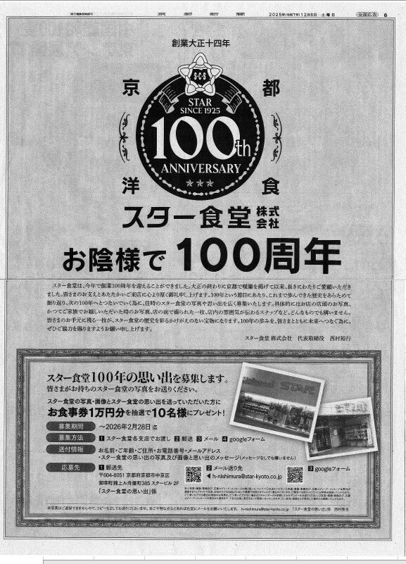 本日2025年12月6日の【京都新聞 朝刊】にも広告掲載しております!!
