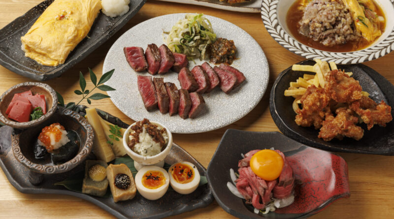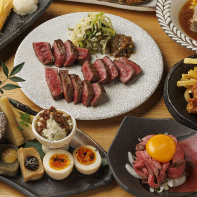 市場小路の5店舗めは北のターミナルに誕生です。最新の市場小路は「ステーキ居酒屋」。厳選し一頭買いした黒毛和牛のステーキは間違いなく良質なモノばかり。幅を大きくとった鉄板、その奥に鎮座する石窯で調理した、様々なお料理を肉料理や京のおばんざいとともにお愉しみいただけます。ビールはもちろん、気軽にオーダーできるワインやこだわりのドリンクを豊富にラインナップしているのも魅力。