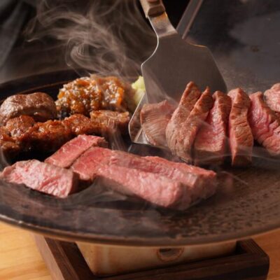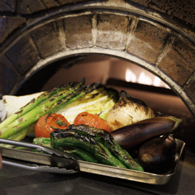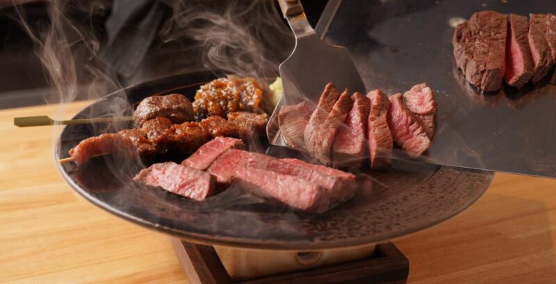 鉄板と石窯を使い、丁寧に焼き上げる黒毛和牛ステーキをオープンキッチンを通して見て頂きたいです。