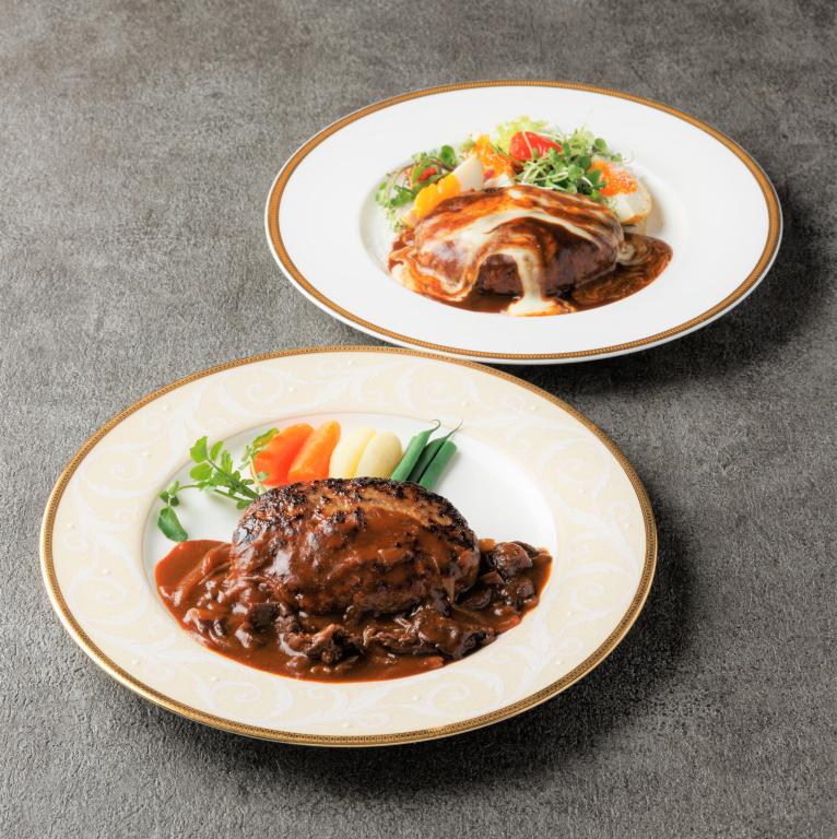 ハンバーグもこだわりで、黒毛和牛と国産豚を使用し