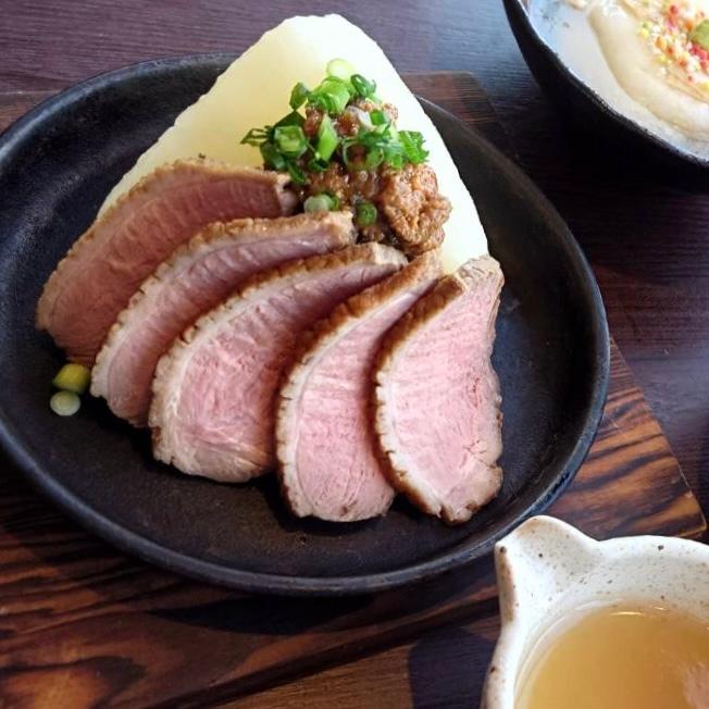 併せて鴨肉の美味しさを引き立てます。添えてあるネギマヨソースをお好みで。