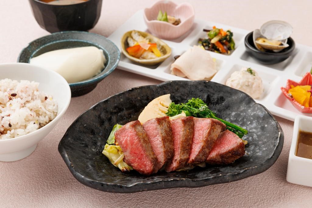 【黒毛和牛赤身ステーキと春の焼き野菜】